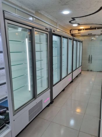 یخچال های الکترو استیل نصب شده در فروشگاه آنلاین یخچال های اپن شیرین و فریزر دو درب و سه درب اطلس